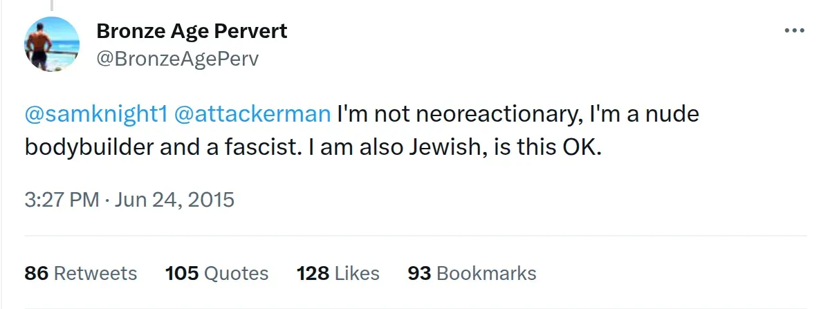 The account’s name and profile come from chess grandmaster Bobby Fischer, who is quoted and sometimes used as a dogwhistle by the far-right because of his antisemitism (despite his own Jewish heritage).